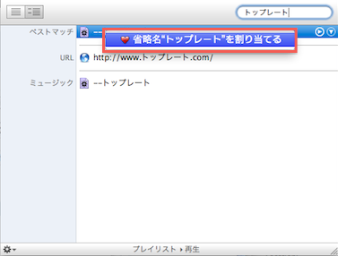 上で省略名を割り当てたプレイリストが現れているはずなので、探す。