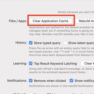 Alfredの 設定 → Advanced の「Clear Application Cache」を実行すると