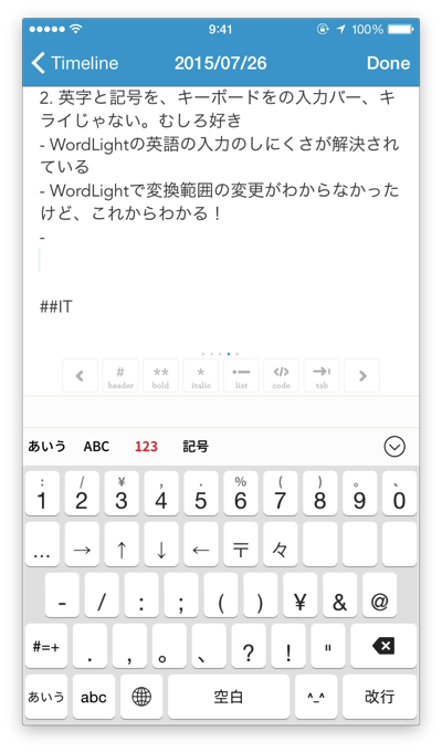 iOSデフォルトの日本語キーボードは、